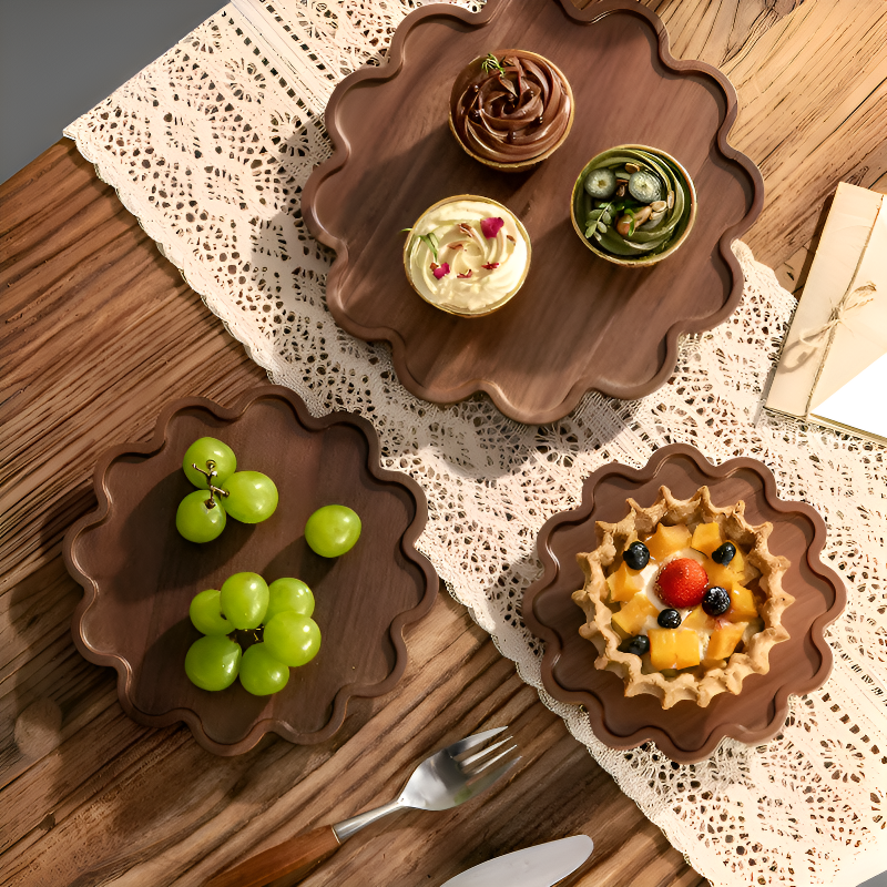 Bandeja de madera multifuncional para frutas y aperitivos en el hogar